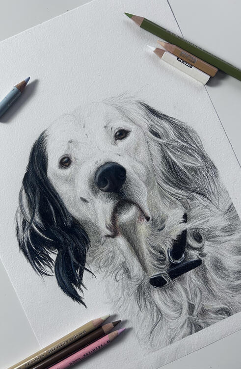 I was often encouraged by my Gran to do pet portraits of her friends dog which encouraged me to use pet portraits as a way to help us raise money for cancer research in her memory in the summer of 2024.